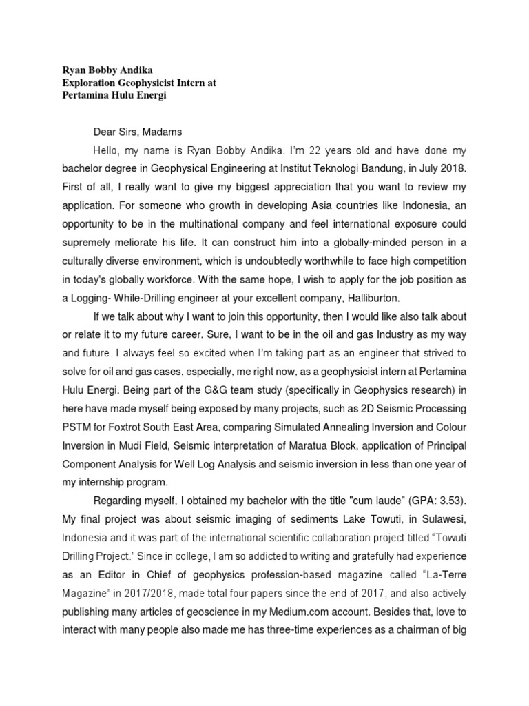 Cover Letter Halliburton Cognitive Science Behavioural Sciences from imgv2-1-f.scribdassets.com How to write a cover letter. How to write a cover letter. Should you have any questions concerning this letter, we will be pleased to discuss them with you. The company trades a portion of its shares on the new york stock exchange and has a current market capitalisation of $40.27 billion. Halliburton north america provides solutions for its customers from alaska, down through the canadian rockies to the california coastline, from the great lakes down to the gulf of mexico. We, halliburton are looking for the right people — people who want to innovate, achieve, grow and lead. Sample cover letter for halliburton, how long should a discussion be in a thesis, things to talk about in a personal statement, contoh soal application letter dan pembahasan. Halliburton is unifying intelligent sensors, ai, subsurface imagery, and virtual remote operations to open a new frontier of opportunity.